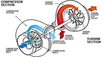 A turbocharger performs this forced induction by exploiting energy of the engine’s exhaust. By the way, this exploitation is one reason the 2014 F1 cars are less noisy than their normally aspirated counterparts of recent years.