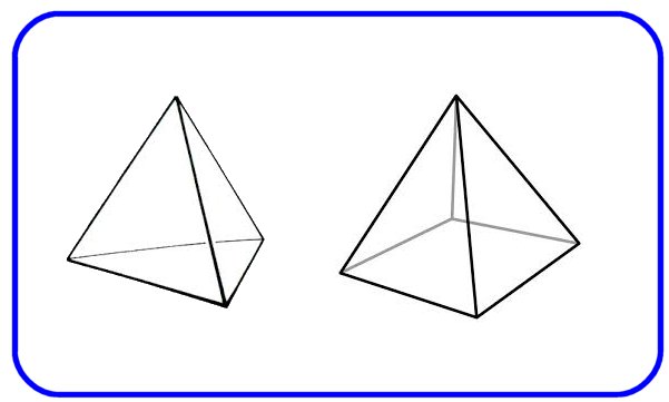 If you start with a two-by-two array, it’s easy to build a tetrahedral pyramid with three on the base and one on top, but this isn’t our goal. We want a square pyramid, one with a square base, not a triangular one.