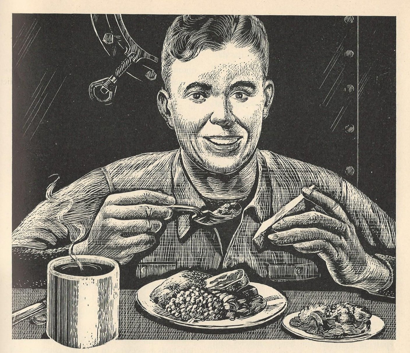 “Of all the responsibilities shared by the Chief Steward and the Cooks who work with him, the most important by far is the good health of the crew.” Illustration from Cooking and Baking on Shipboard.