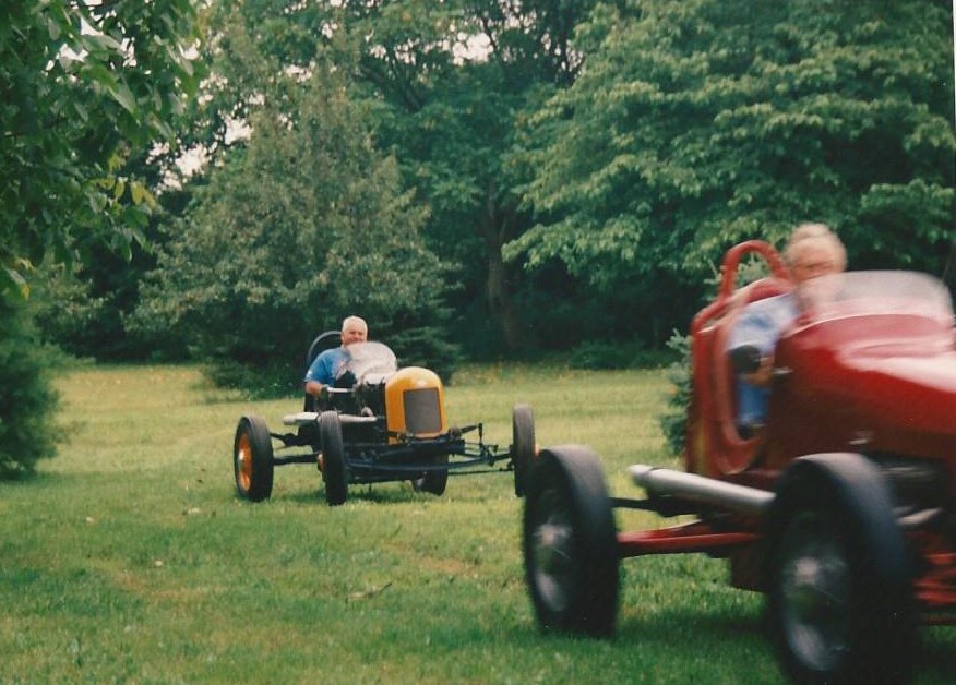 We warmed up the Miller-Ford and the Dreyer, then took turns chasing each other around the grass. The Miller-Ford’s engine had profited from Jake’s wizardry. He had applied plenty of period hop-up bits (and removed a considerable pile of metal shavings from the Model A’s massive flywheel).