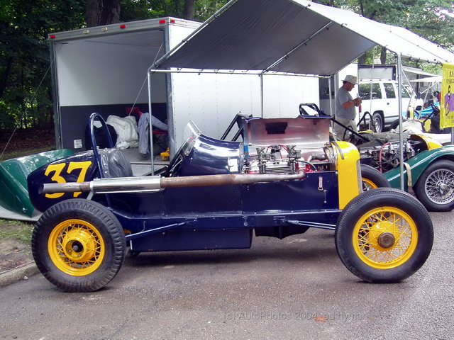Jake’s 1930 Miller-Ford sprint car; his Morgan Plus Four is visible in the background. Image by Ed Hyman.