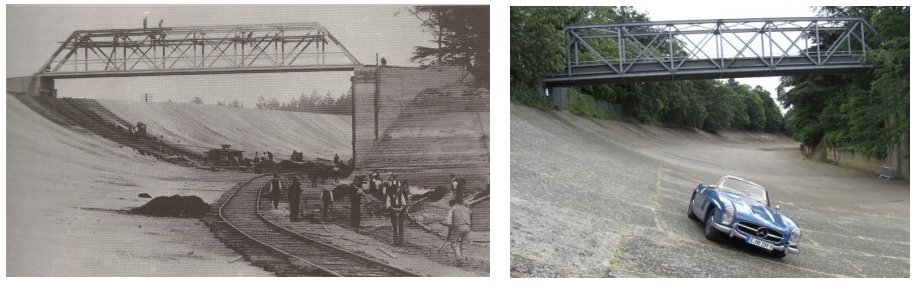 The Brooklands banking: under construction in 1907 and during my visit in 2008 (see http://wp.me/p2ETap-sk).