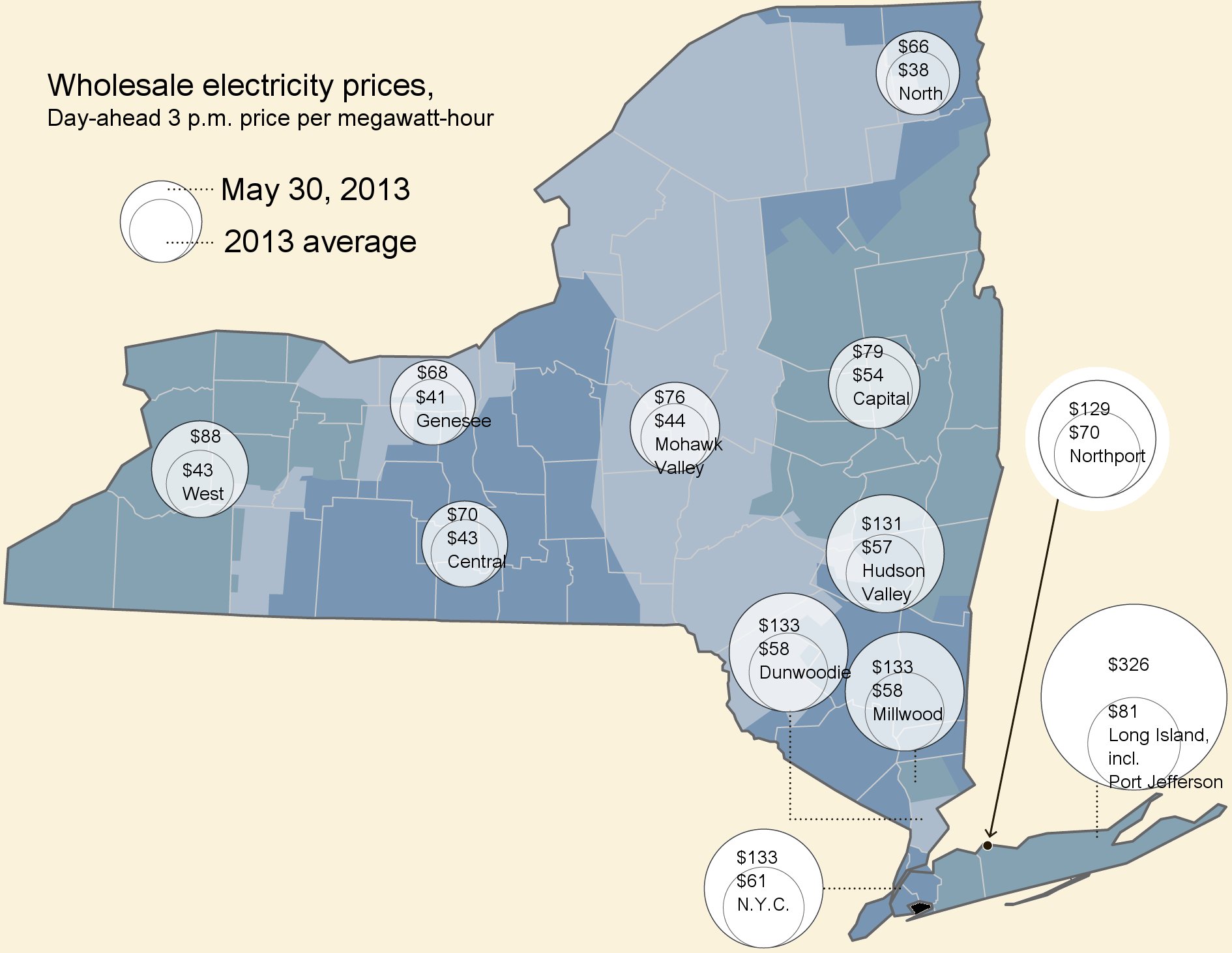 Sure enough, a heat wave on May 30, 2013, boosted all electric demand and, thus, prices. However, power-line maintenance near Northport precluded its sharing electricity with Port Jefferson. On that day, the spot price in Northport spiked from an average $70 to $129 per megawatt-hour. But down the road in Port Jefferson, it soared to $326/megawatt-hour—and DC Energy pocketed the difference, more than $1.5 million within only 48 hours.