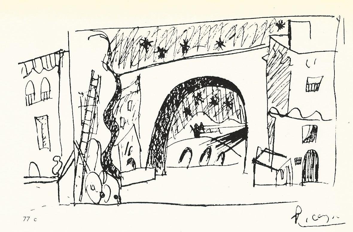 Set variation for The Three-Cornered Hat, 1919, by Pablo Picasso. Image from Art and the stage in the 20th century;: Painters and sculptors work for the theater.