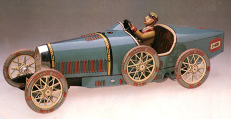 Paya’s tintypes rivaled their German and French competitors, with 2000 different toys offered between 1906 and 1940. In 1985, Paya resumed toy production using the original tooling, dies and molds (an idea exploited later in the full-size auto business as “continuation vehicles”). Currently, 50 Paya toys have been reissued, including the Bugat.
