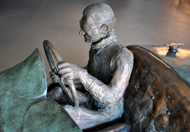 One of the Chevalier Bugatti bronzes honoring W Williams resides along the Monaco circuit, at the bottom of the hill at Ste. Devote. (It’s crated away to safety during race activities). This other is at the Mullin (http://wp.me/p2ETap-1Zb).