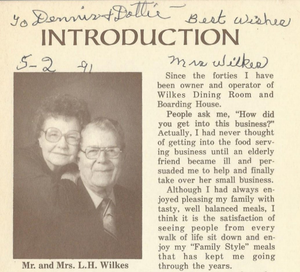 I’ve written about its cookbook (http://wp.me/p2ETap-2oy). Mrs. Wilkes, rest her soul, wrote of “the satisfaction of seeing people from every walk of life sit down and enjoy my “Family Style” meals.” I remember fondly how she’d ask patrons to join hands for a brief prayer of thanks before the meal.