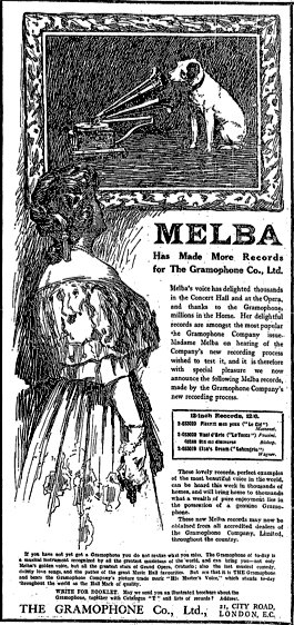 Nipper heard more than his Master’s Voice. Nellie was one of the earliest operatic performers to sing for the Gramophone.
