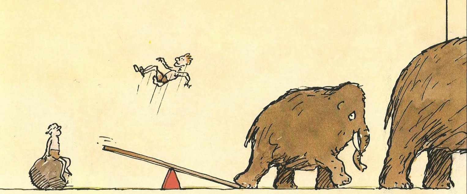 A wooly mammoth and seesaw contribute a working description of the lever. This and other images from The Way Things Work.