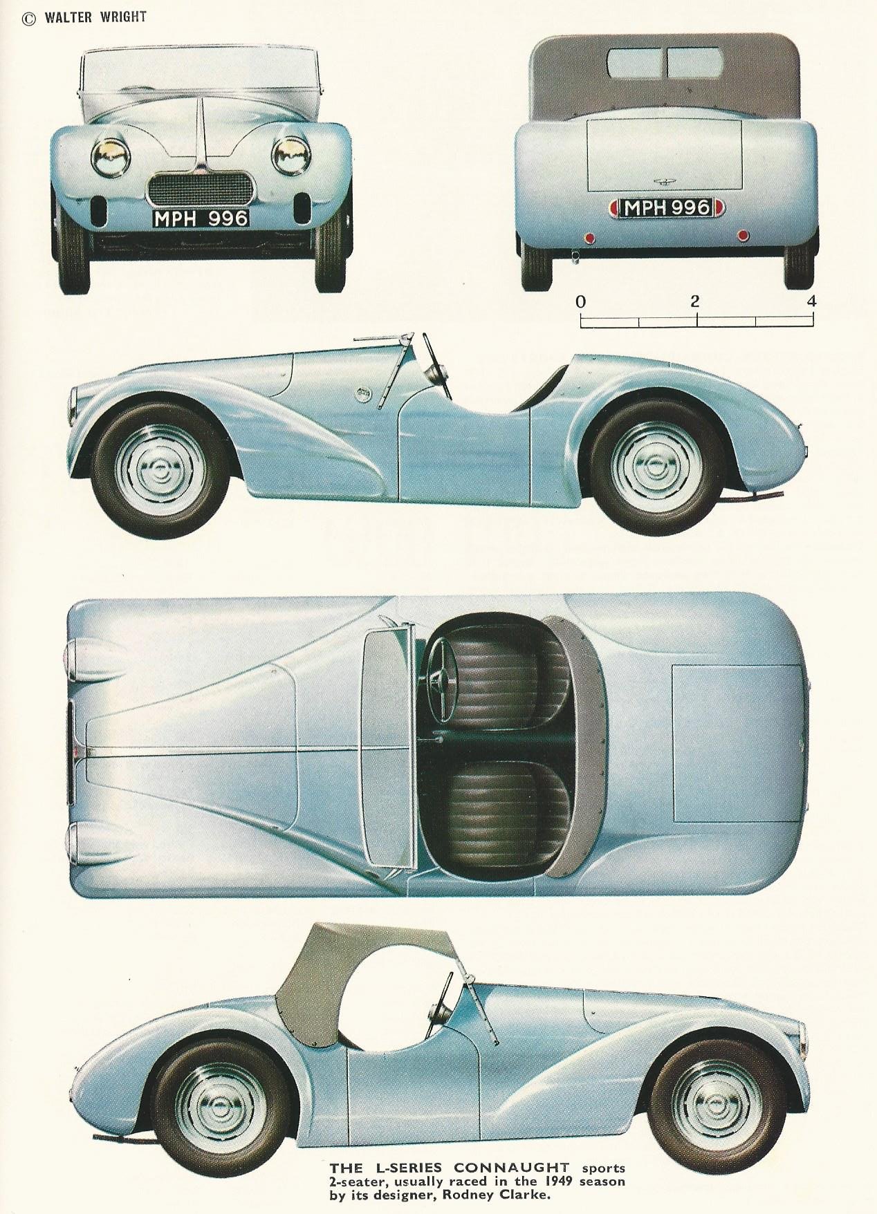 Above, 1949 Connaught Type L sports car. Below, 1952 Connaught A Type. Images from Classic Cars in Profile Volume 2 Profiles Publications 1967.