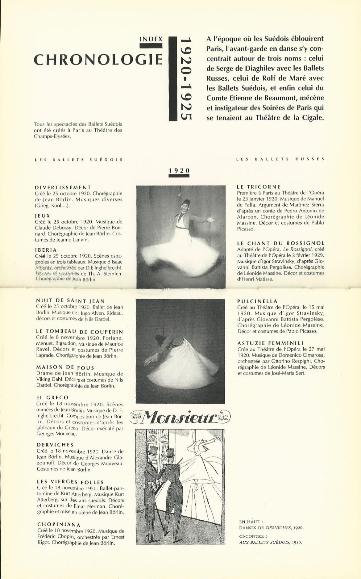 The book closes with a chronology of Ballet Suédois productions presented at the Théâtre des Champs-Elysées in Paris.