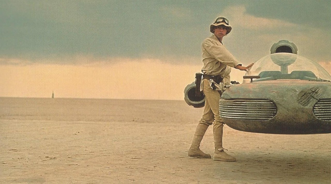 It’s observed that Luke Skywalker’s landspeeder has an edge over state-of-the-art transportation: “It’s powered by the force of imagination.”