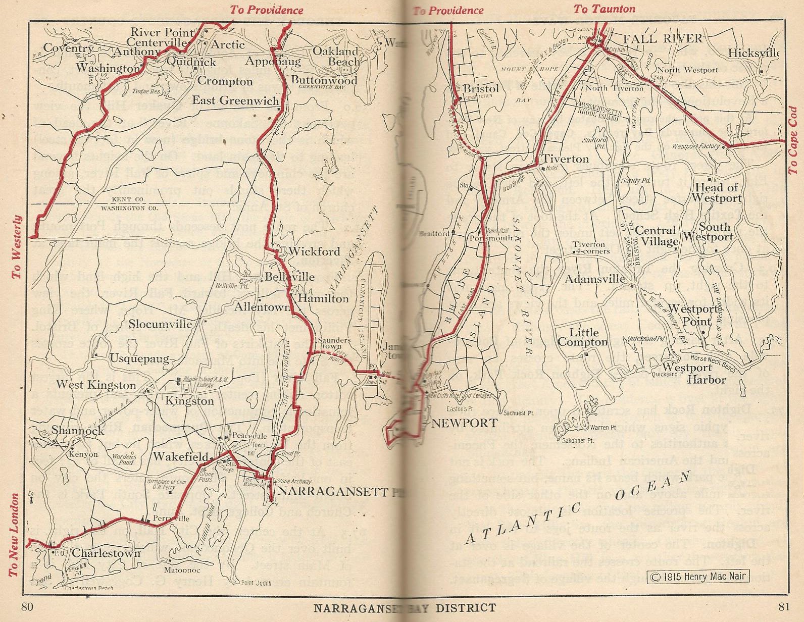 The favorite motor ways of New England: Historical and descriptive : with illustrations, comprehensive road maps, and sky-line sketches (MacNair’s motorway series) by L.H. Baker, Henry MacNair Publishing, 1915.