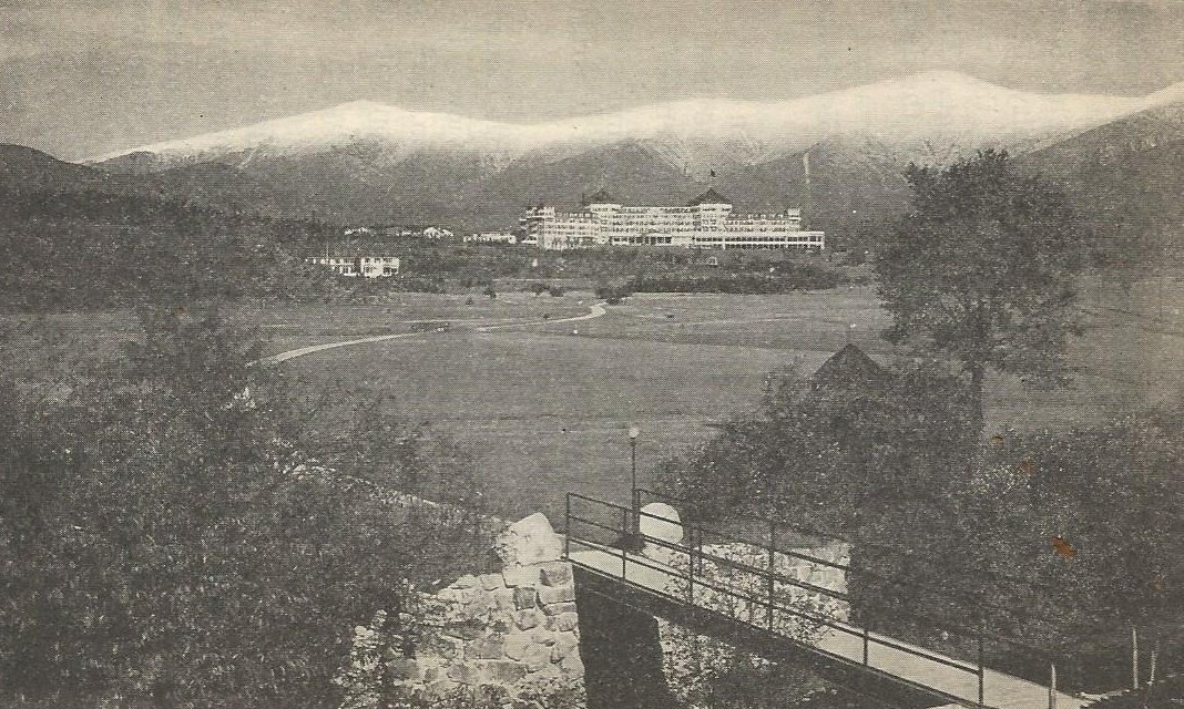 Above, the Presidential Range, as identified from Bretton Woods, New Hampshire, 1915. Below, the Mt. Washington Hotel at the foot of the range.