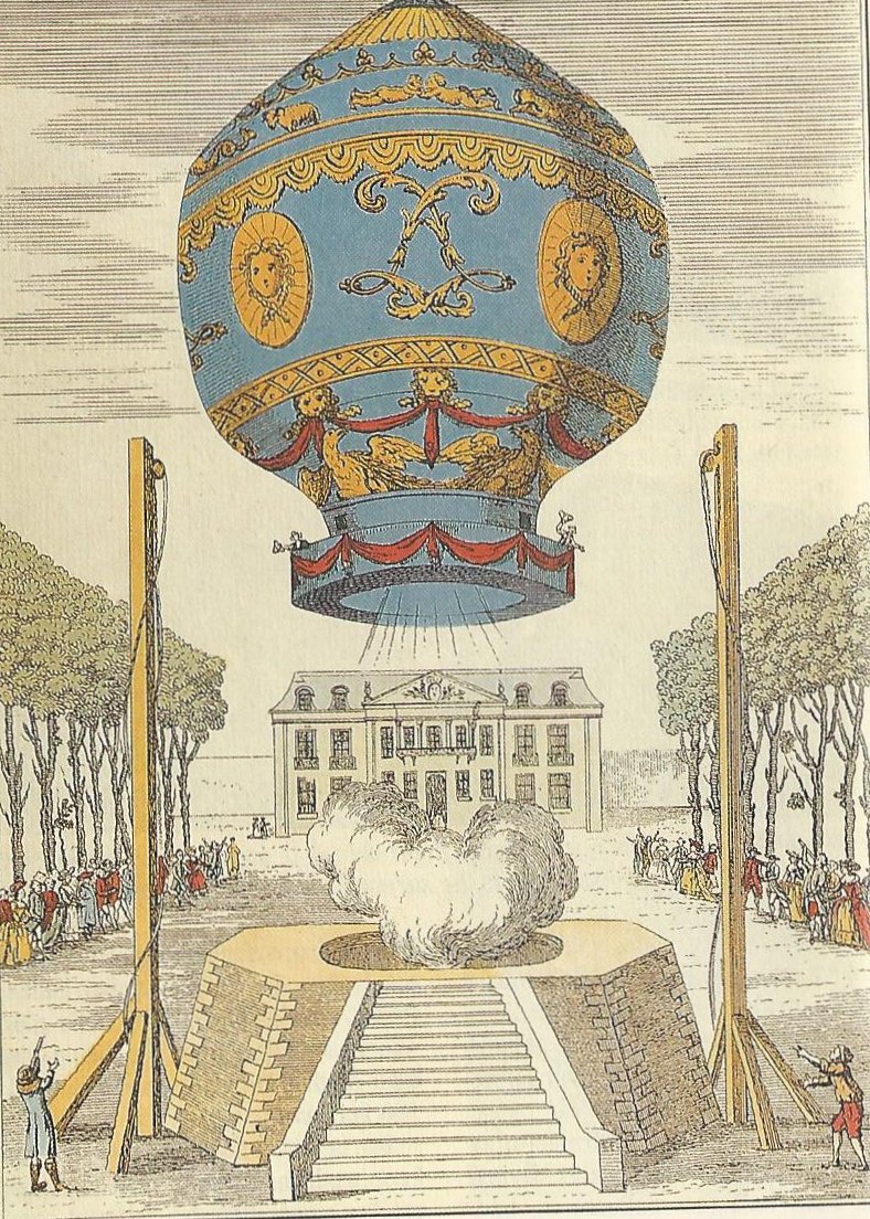 The Mongolfier brothers’ balloon, 1783. This, other images and commentary from Chronicle of Aviation, Chronicle Communications Ltd., 1992.