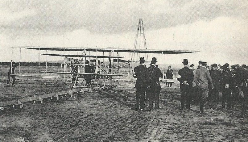 Then, on August 9, 1908, Wilbur Wright took the Wright Flyer into the air at the Hunaudière horse-race track just south of Le Mans, France. See “Wilbur Wows ’Em at Le Mans,” http://wp.me/p2ETap-2j for details.