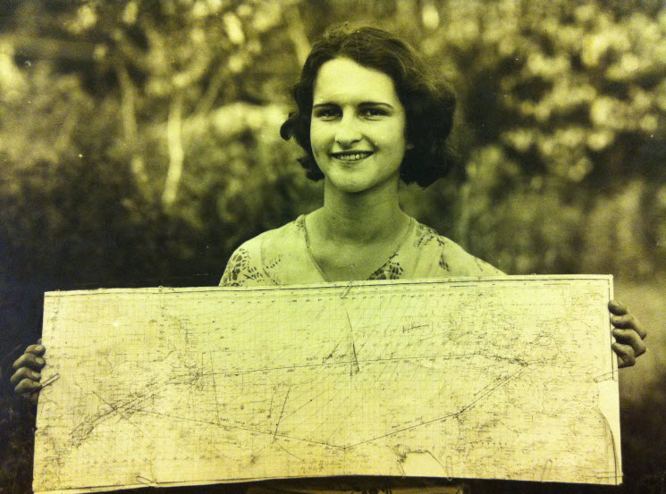 Louise Stef holds the map that fell from Point d’Interrogation as it flew over her family’s farm near Portsmouth, New Hampshire.