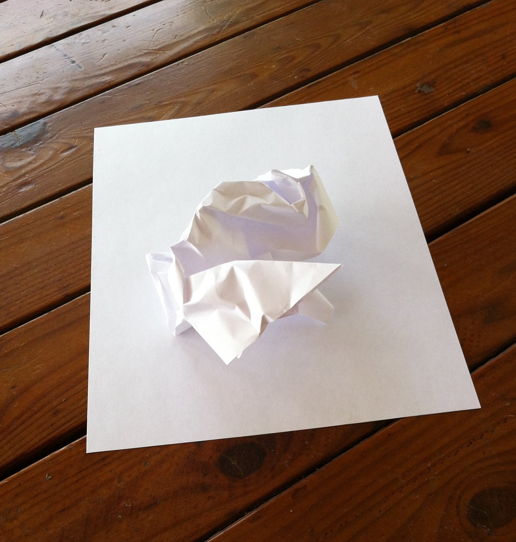 For instance, take two sheets of paper, one atop the other. Crumple the top sheet in any way possible (short of outright tearing it) and toss it back on the lower paper.