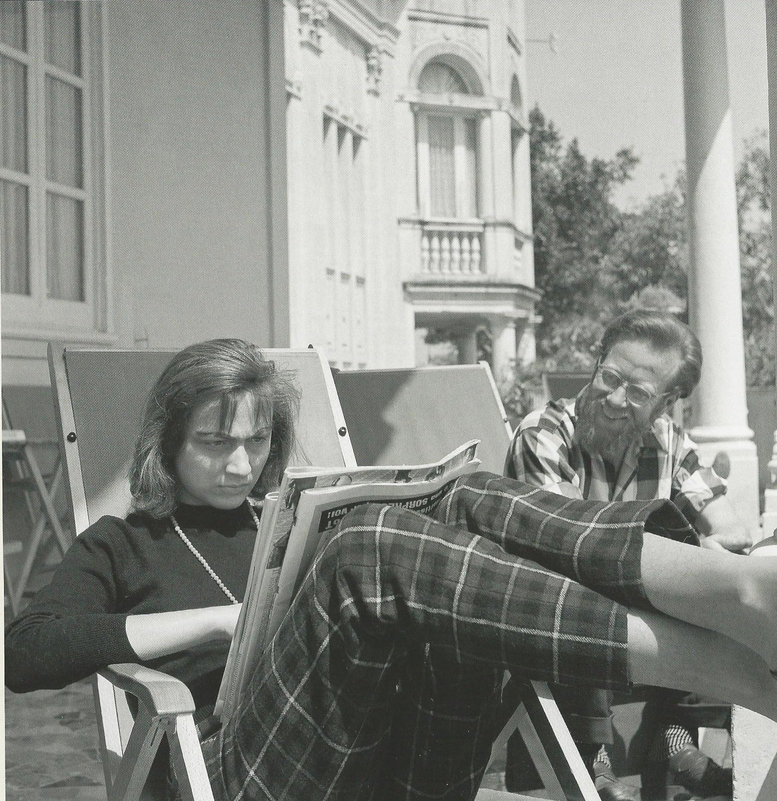 Syracuse Grand Prix weekend, Sicily, April 1956. Film actress Fiamma Breschi apparently unimpressed with English motorsports journalist Denis Jenkinson.