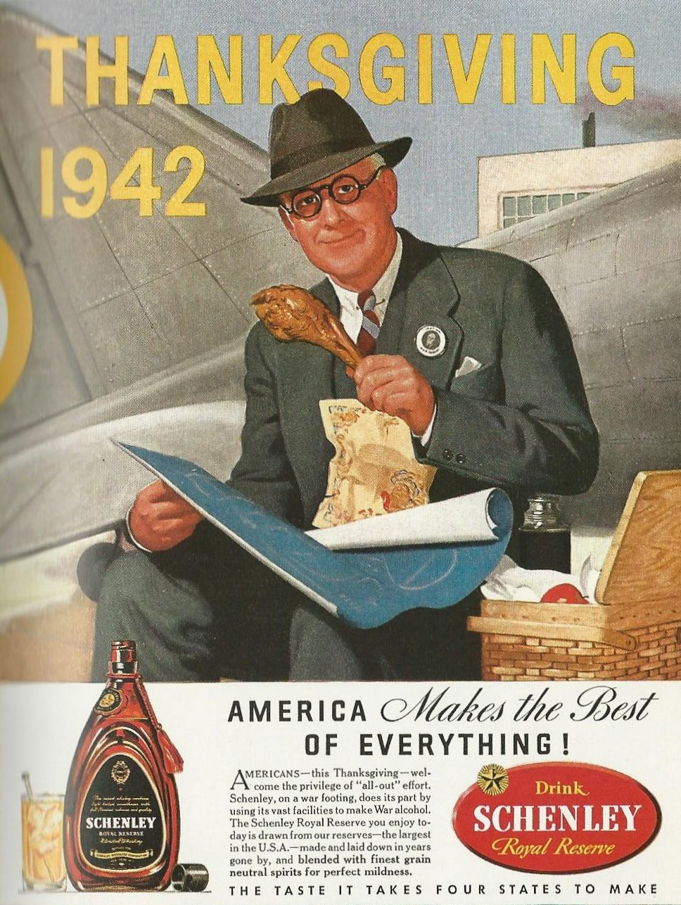 I respect the guy’s role in airplane design and admire his specs. But Schenley and a drumstick for lunch?