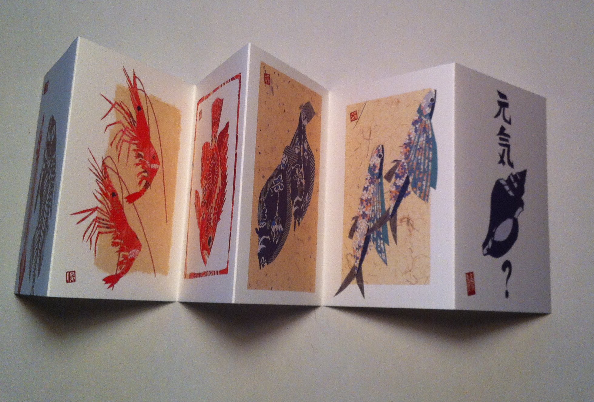 Sushi Bar comes with seafood cards to be matched, instructions in Japanese and English and, below, six handsomely printed postcards.