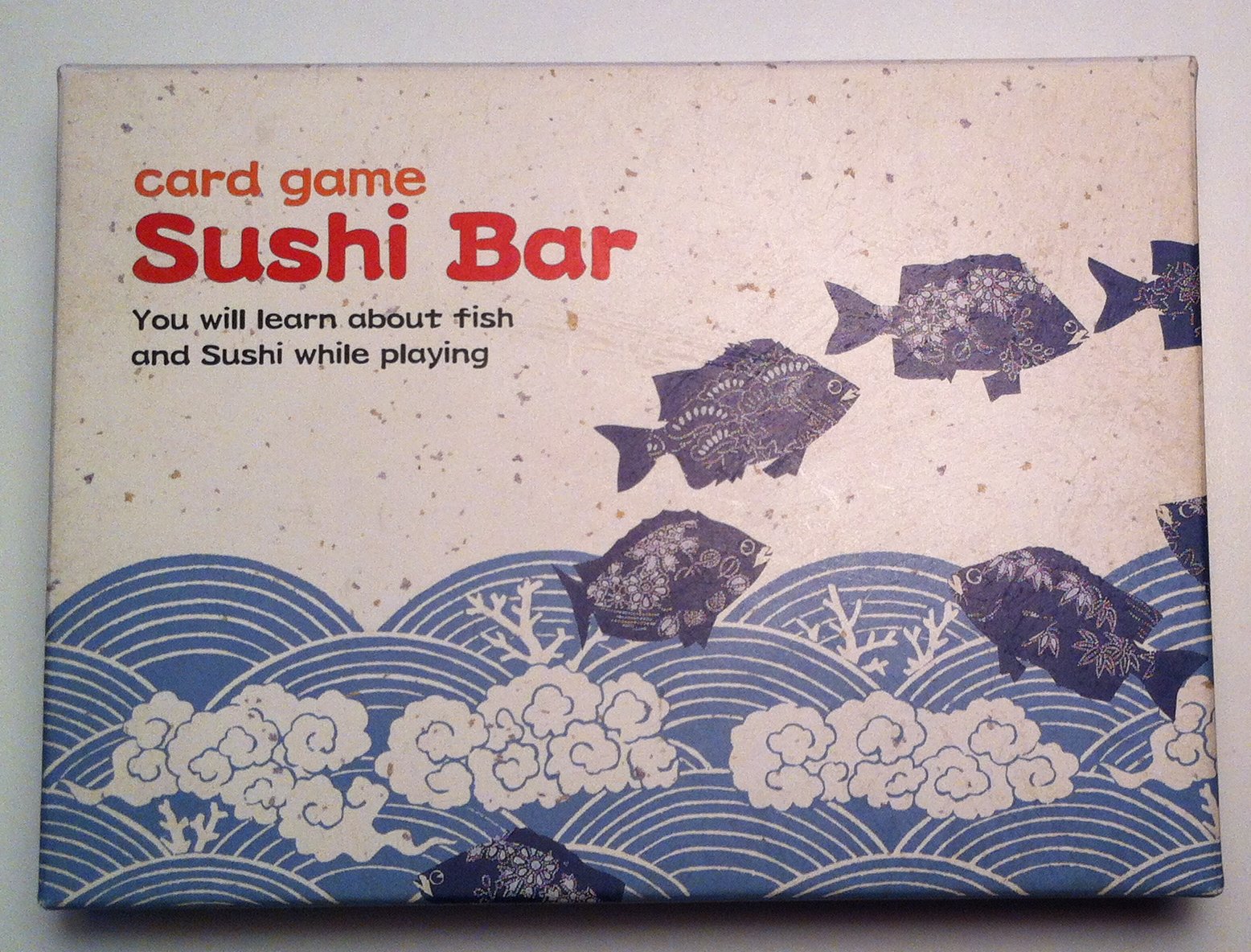 寿司が大好きです! Sushi ga daisuki desu! I love sushi! This artful Japanese presentation of vinegared rice, seafood and other delicacies offers a variety of tastes; a sushi bar offers a congenial setting for enjoying these essences of Japanese culture. And I’ve found an entertaining way to sharpen knowledge of Japanese seafood, not to say the appetite: a card game called Sushi Bar.