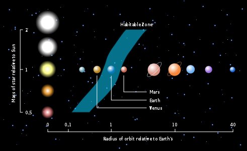 A star system’s habitable zone depends on the mass of its star. Image from Penn State Eberly College of Science, http://goo.gl/ZHCNDN.
