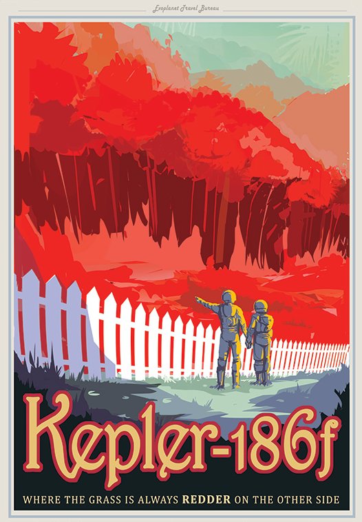 Kepler-186f. Downloads of this and the other posters for screen or print are available from the Exoplanet Travel Bureau.