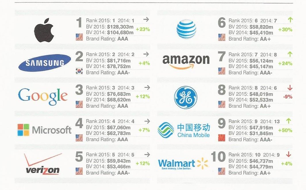 The world’s most valuable brands, a combination of brand power, brand revenue and its segment’s royalty rate.
