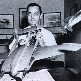 Vincent Burnelli. 1895 – 1964, American aeronautical engineer, with one of his advanced proposals, ca. 1940.