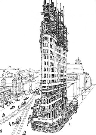 The first third of The Building of Manhattan is historical, the evolution from wood, stone and brick to iron followed by walls of steel and glass. Along the way, famous structures such as the Flatiron Building, 1901, and Empire State Building, 1930-1931, are described.