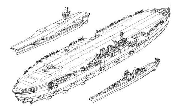 The proposed HMS Habakkuk, a conventional battleship and aircraft carrier putting its size in perspective.