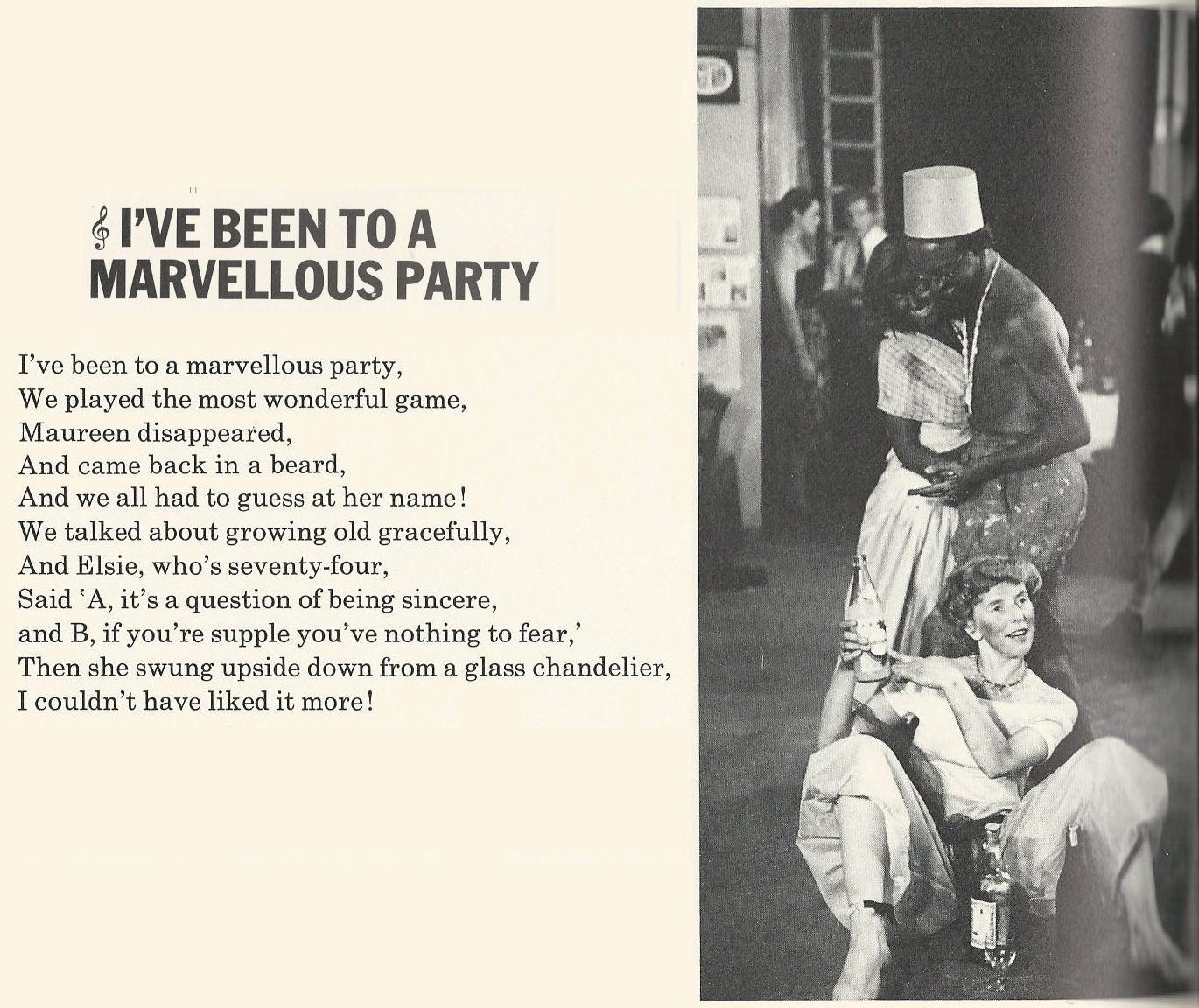 For his revue Set to Music, 1939, Coward composed a patter-song, of sorts, in “I’ve Been to a Marvellous Party.” It contains wonderful lines such as “We knew the excitement was bound to begin/When Laura got blind on Dubonnet and gin/And scratched her veneer with a Cartier pin,/I couldn’t have liked it more.”