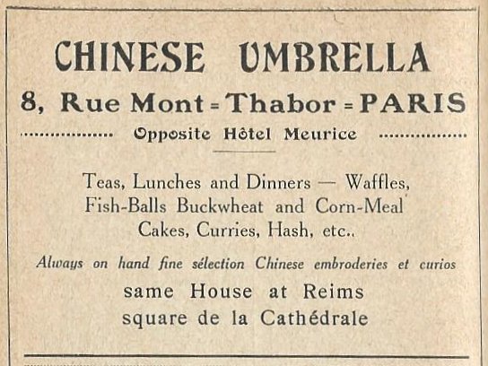 Returning to Paris in my new Brescia, I might fancy a bit of dinner. What about the Chinese Umbrella? It certainly offers a varied menu.