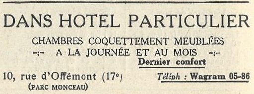 Since the guide was published by a hotel, indeed, then and now one of Paris’s finest, there aren’t many other Paris hoteliers cited. However, one caught my eye: Dans Hotel Particulier.