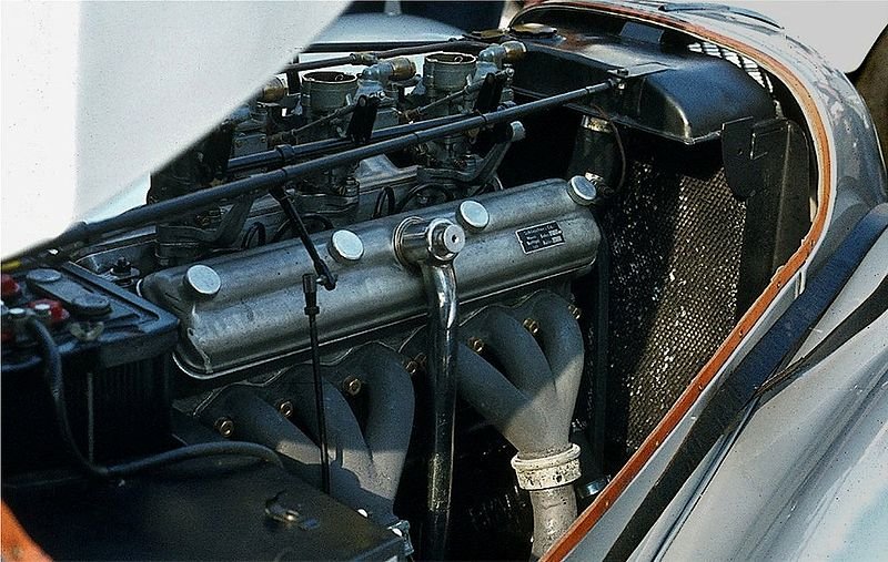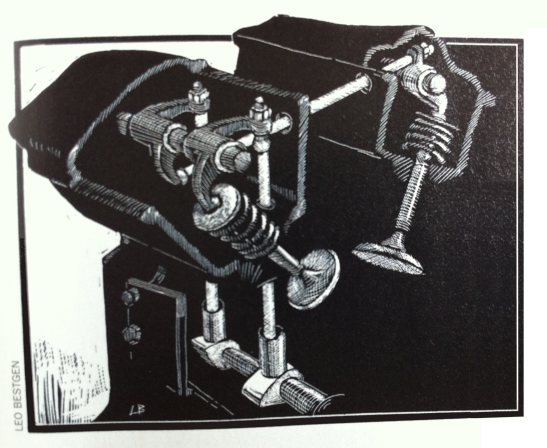 Bugatti Type 13 Brescia four-cylinder powerplant, with single overhead camshaft, four valves per cylinder, 1921. Image from Hugh Conway’s