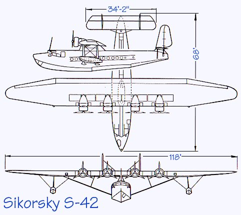 The S-42 first flew in 1934, with a total of 10 built exclusively for Pan Am. Innovative features included an all-metal construction using duralumin, hydraulic flaps to reduce speeds of takeoff and setdown, and an early application of variable-pitch propellers.