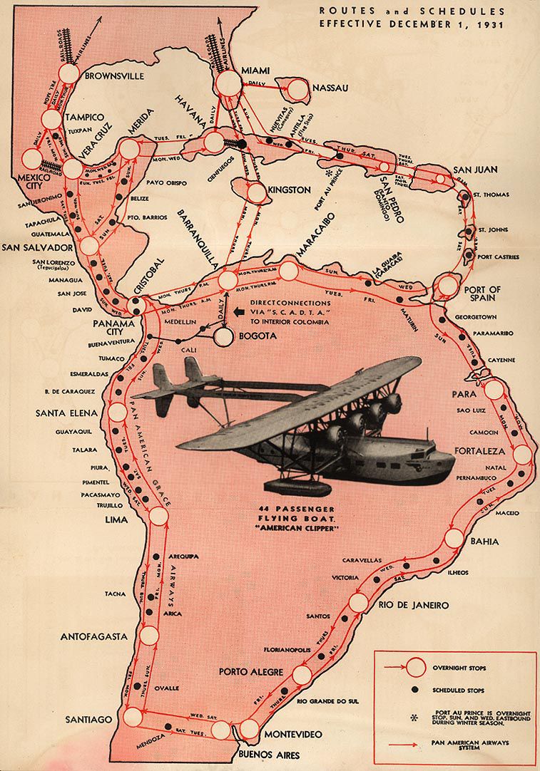 Pan Am Sikorsky S-40 Caribbean and Latin American routes, 1931. Image from Fly Away.