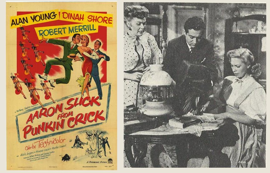Aaron Slick From Punkin Crick, 1952, was a decidedly non-operatic entertainment for co-star Merrill, on the right with Adele Jergens and Dinah Shore.