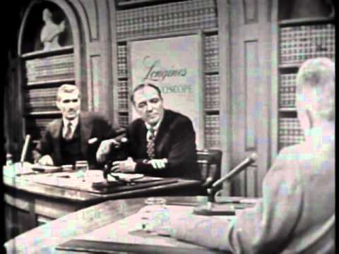 Byrd’s Longines Chronoscope interview. From left to right, Kenneth Crawford, Newsweek magazine; Larry LeSueur, CBS News; Admiral Byrd.
