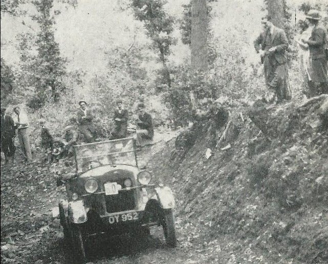Wing-Commander A.F. Scroggs, famed Trojanist, does some mud-plucking at the Fingle Bridge Hill Climb.