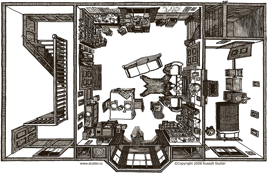 221b Baker Street, illustration by Russell Stutler. I recommend Stutler’s website.