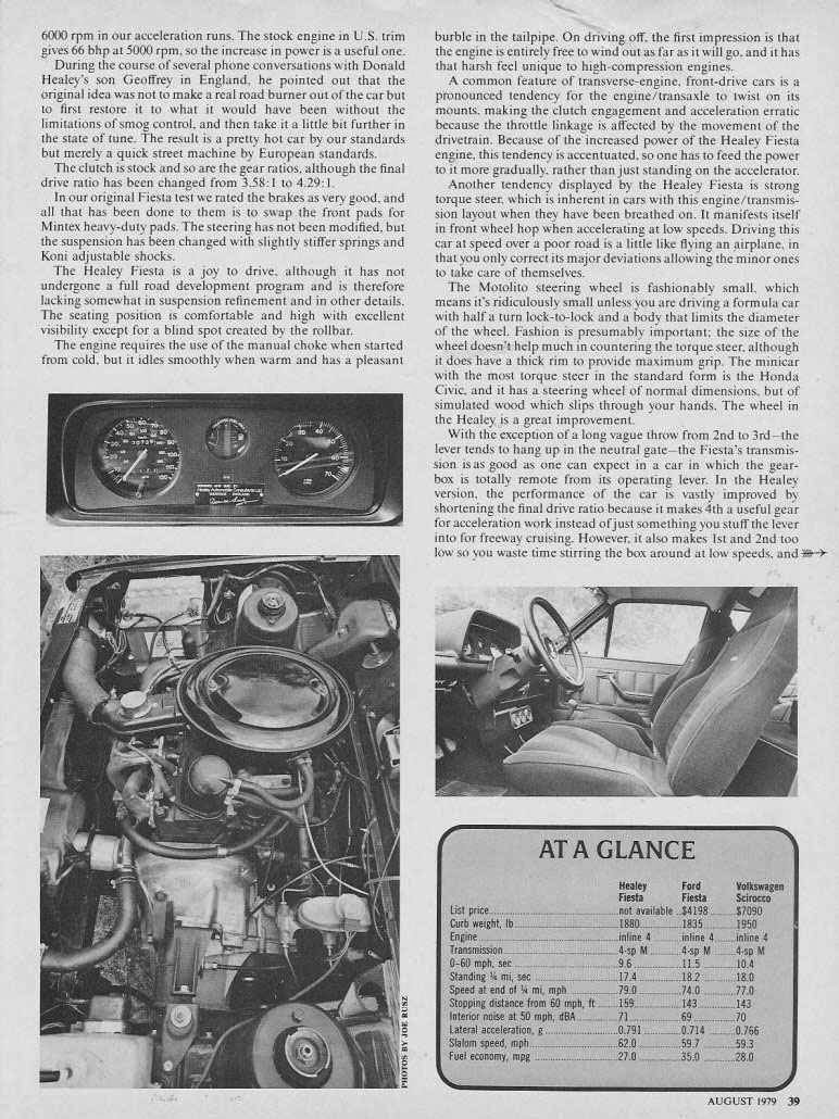 However, the Healey Fiesta’s 10.1:1 compression ratio called for premium gasoline, and this was the day that the 1979 oil crisis hit home. High test became unavailable, even to those suffering multi-hour lines at gas stations.