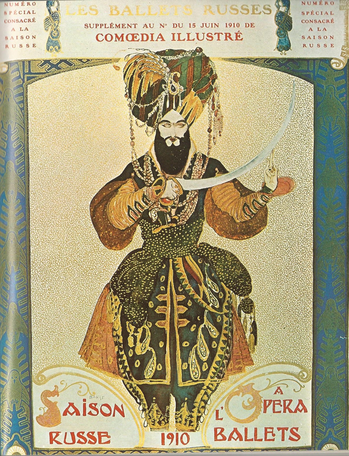 Cover of the Ballets Russes supplement, 1910. A costume by Léon Bakst from Schéhérazade. Image from The World of Serge Diaghilev.