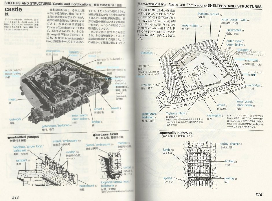 In the Shelters and Structures chapter, it’s easy to get occupied in the two-page spread devoted to the Tower of London. I now know where patriots were when “o’er the ramparts we watched.” Also, the item corrected my misunderstanding about loopholes. I used to think they were passages permitting counterattacks. In fact, they’re slits in castle walls designed for archers.