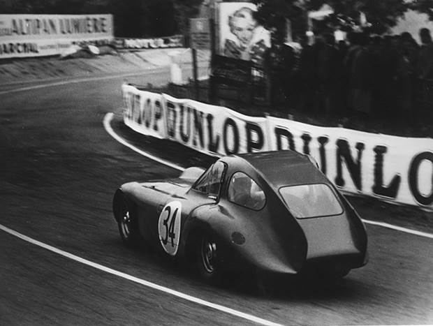 The 1955 Bristol 450 Le Mans car did away with its roof (thus again reducing frontal area), had a small single windscreen and a massive tail fin that grew from the driver’s headrest.