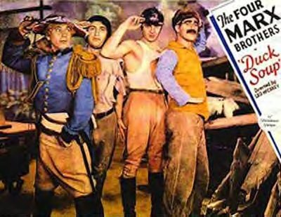 Duck Soup, 1933, starring the Marx Brothers and Margaret Dumont.