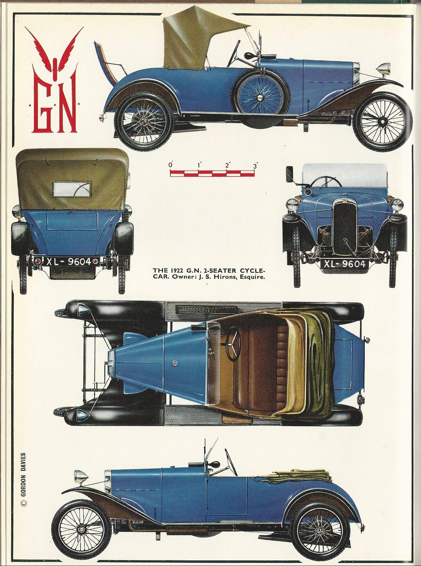 G.N. cyclecar, c. 1915. These and other images from “The Touring G.N.s” by William Boddy, Classic Cars in Profile, Vol. 3, Profiles Publications Limited, 1967.