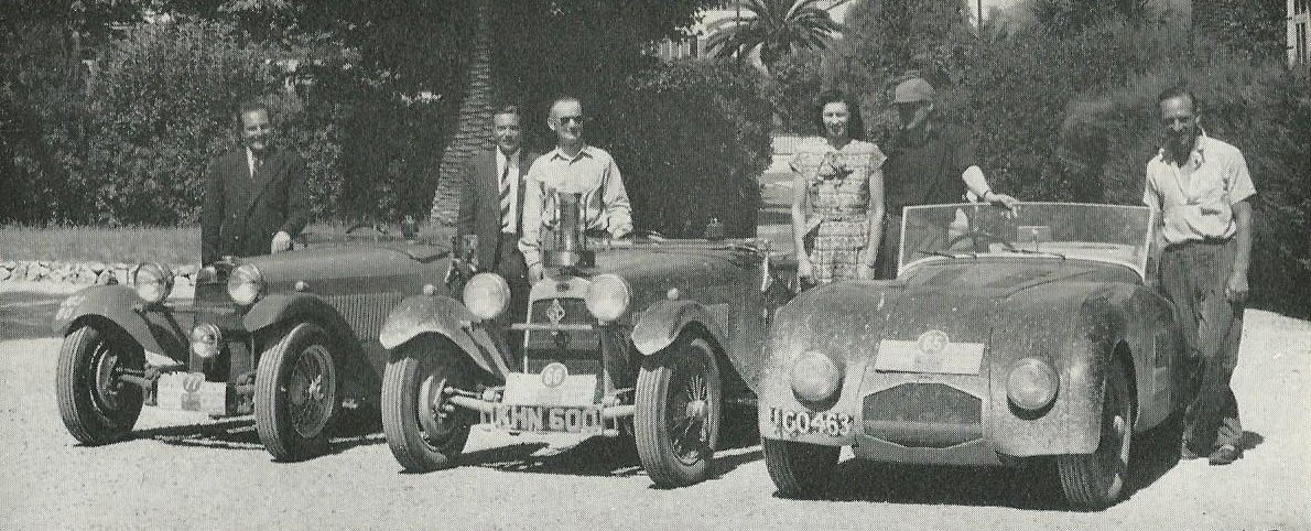Three of the six successful 1948 Alpine Rally cars, an 1100, a 1500 and an Aerodynamic.