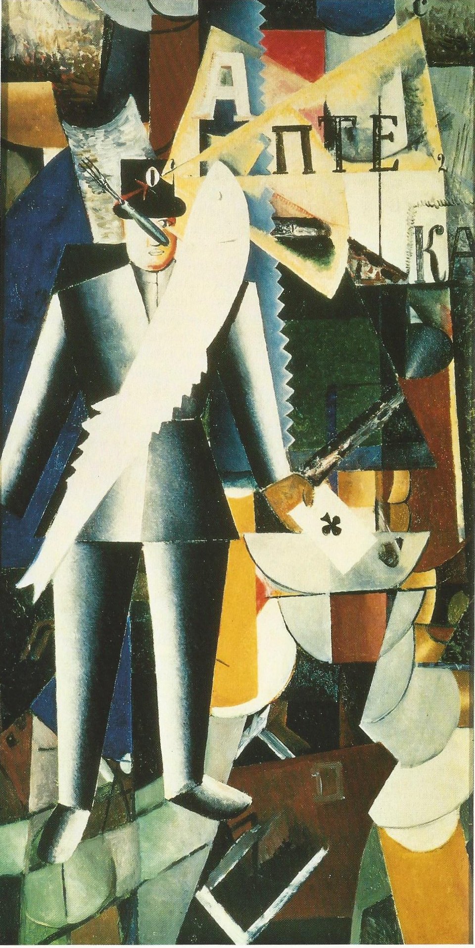 Kasimir Malevich’s art moved from Neo-Primitive to Cubist to an abstraction that came to be called Suprematism, abstract art “based on the supremacy of pure artistic feeling.” With regard to technology, he wrote, “… the new life of iron and the machine, the roar of the motorcars, the brilliance of electric lights, the growling of propellers, have awakened the soul….”